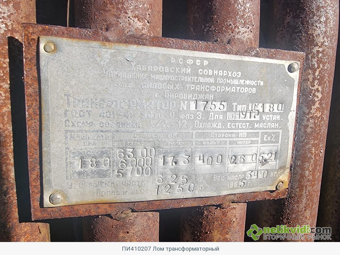 ПИ410207 Лом трансформаторный. Информация об имуществе