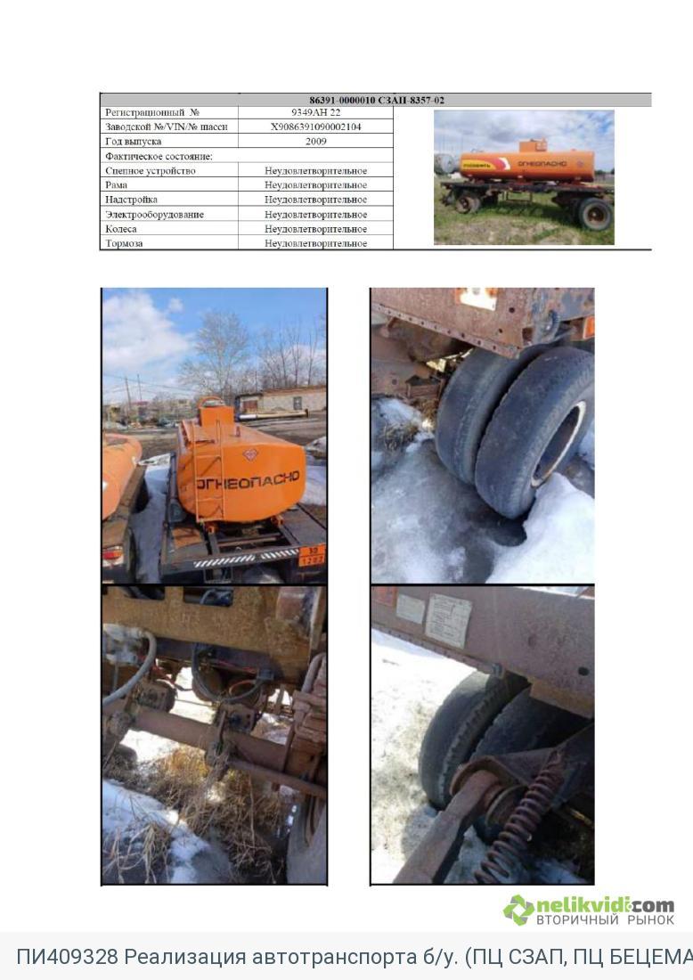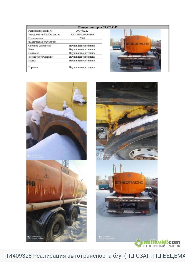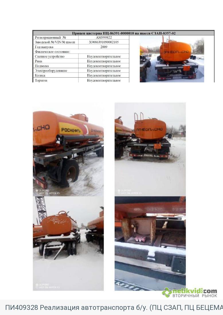 ПИ409328 Реализация автотранспорта б/у. (ПЦ СЗАП, ПЦ БЕЦЕМА, ППЦ НЕФАЗ, Автоцистерна МАЗ-5337 02-242) 7 лотов. ЛОТ 1