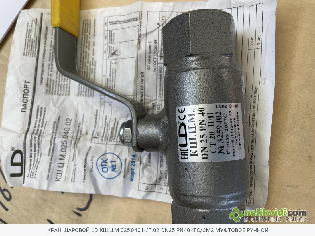 КРАН ШАРОВОЙ LD КШ.Ц.М 025.040.Н/П.02 DN25 PN40КГС/СМ2 МУФТОВОЕ РУЧНОЙ. Стоимость 858,42 руб. без НДС за 1 шт. Условия оплаты- 100% предоплаты. Условия доставки- Самовывоз со склада.