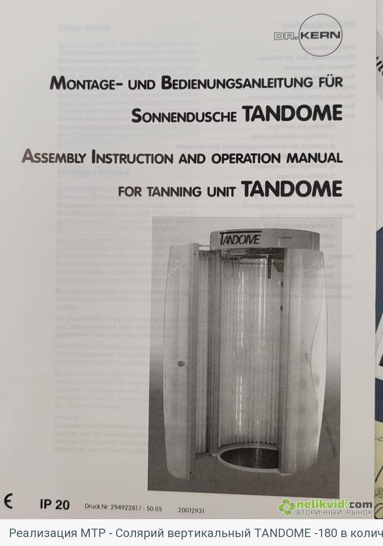 Реализация МТР - Солярий вертикальный TANDOME -180 в количестве 1 шт.. Краткая характеристика: