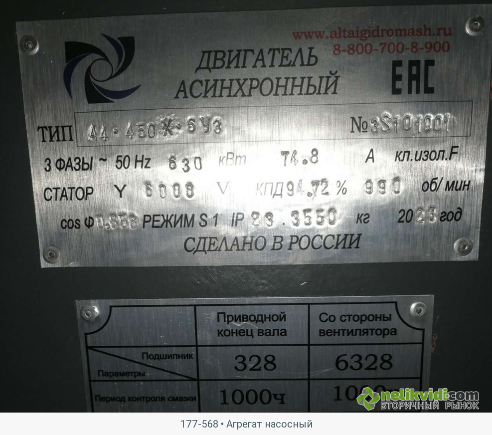 177-568 • Продажа Агрегат насосный. 1. "Агрегат насосный АД2500-62-2 левый с электродвигателем 630кВт 980об/мин" в количестве 1 шт. - 4 375 000,00 руб ;