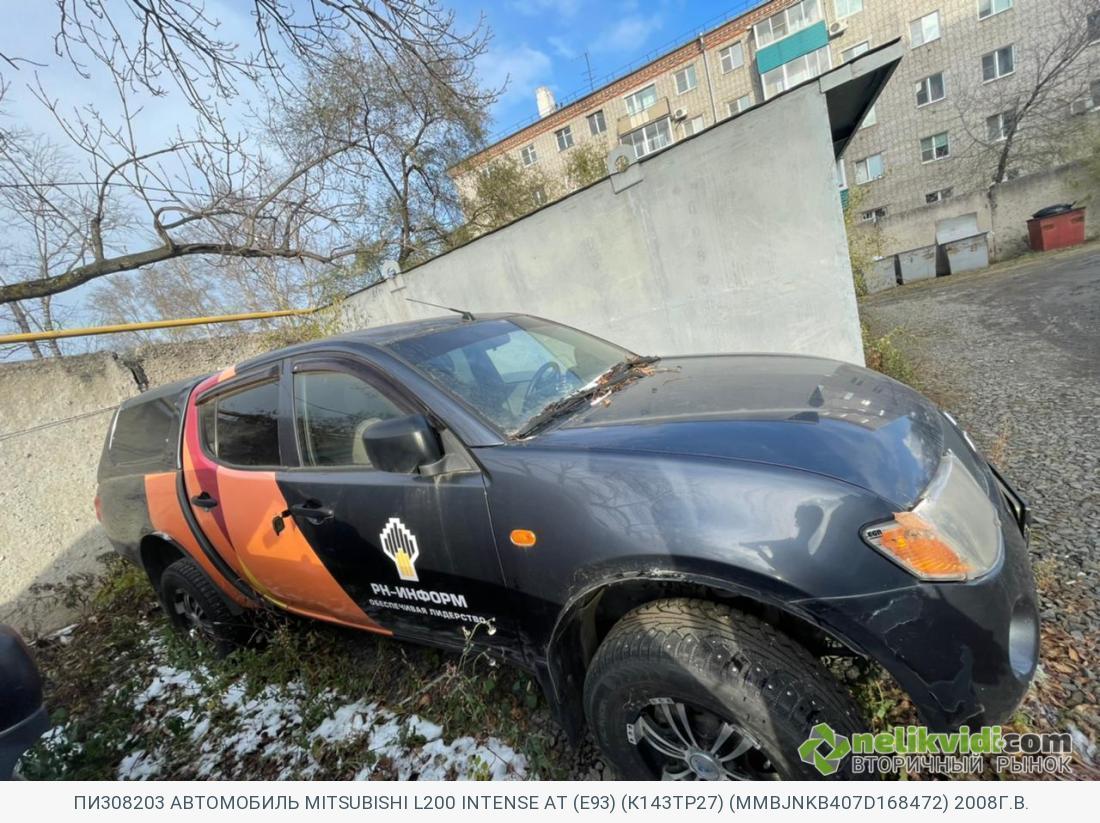 ПИ308203 АВТОМОБИЛЬ MITSUBISHI L200 INTENSE AT (E93) (К143ТР27) (MMBJNKB407D168472) 2008Г.В.. Марка/модель: MITSUBISHI L200 2.5