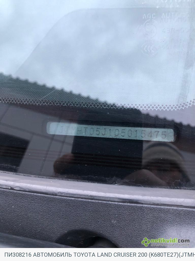 ПИ308216 АВТОМОБИЛЬ TOYOTA LAND CRUISER 200 (K680TE27)(JTMHT05J105015475) 2008Г.В.. Марка/модель: TOYOTA LAND CRUISER UZJ200L-GNAEKW