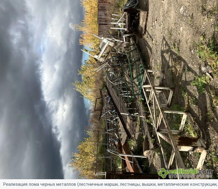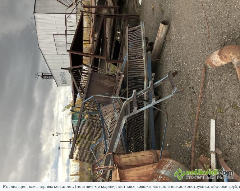 Лом черных металлов (лестничные марши, лестницы, вышки, и прочее), 20т. (ПИ504186). Реализация лома черных металлов (лестничные марши, лестницы, вышки, металлические конструкции, обрезки труб, вентили, стеллажи, ящики, уголки, тонколистовая жесть)