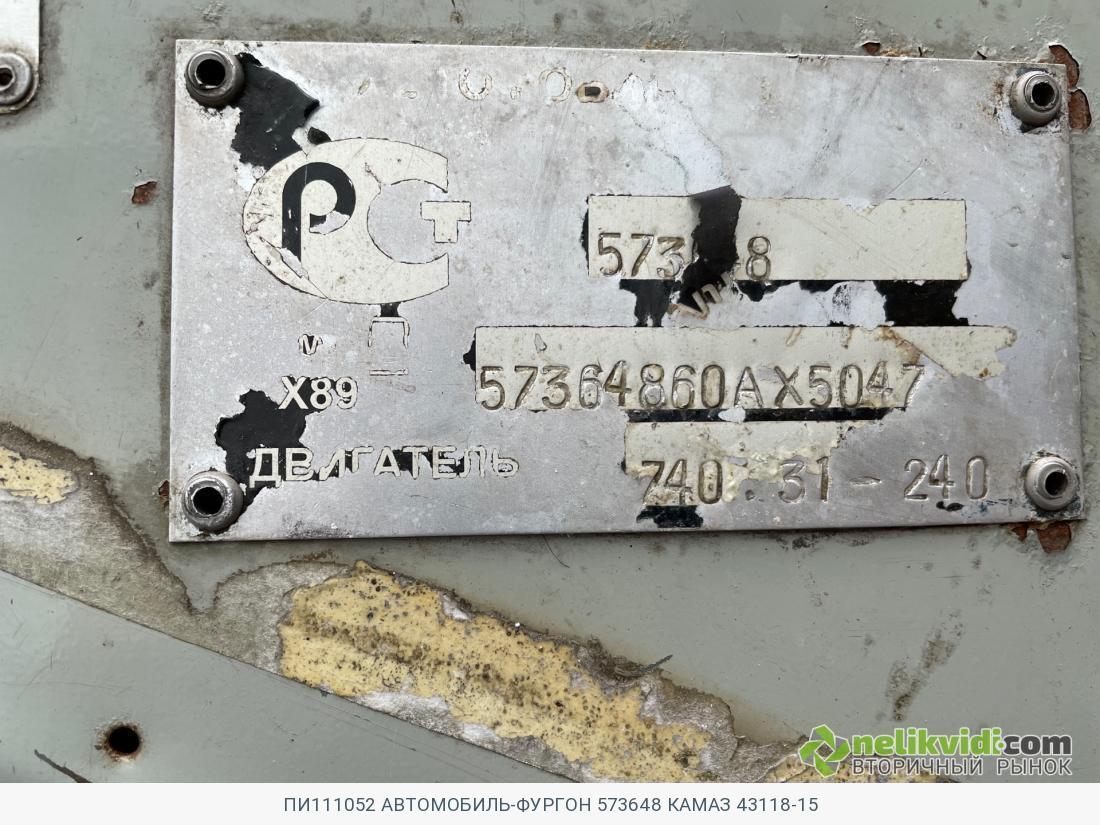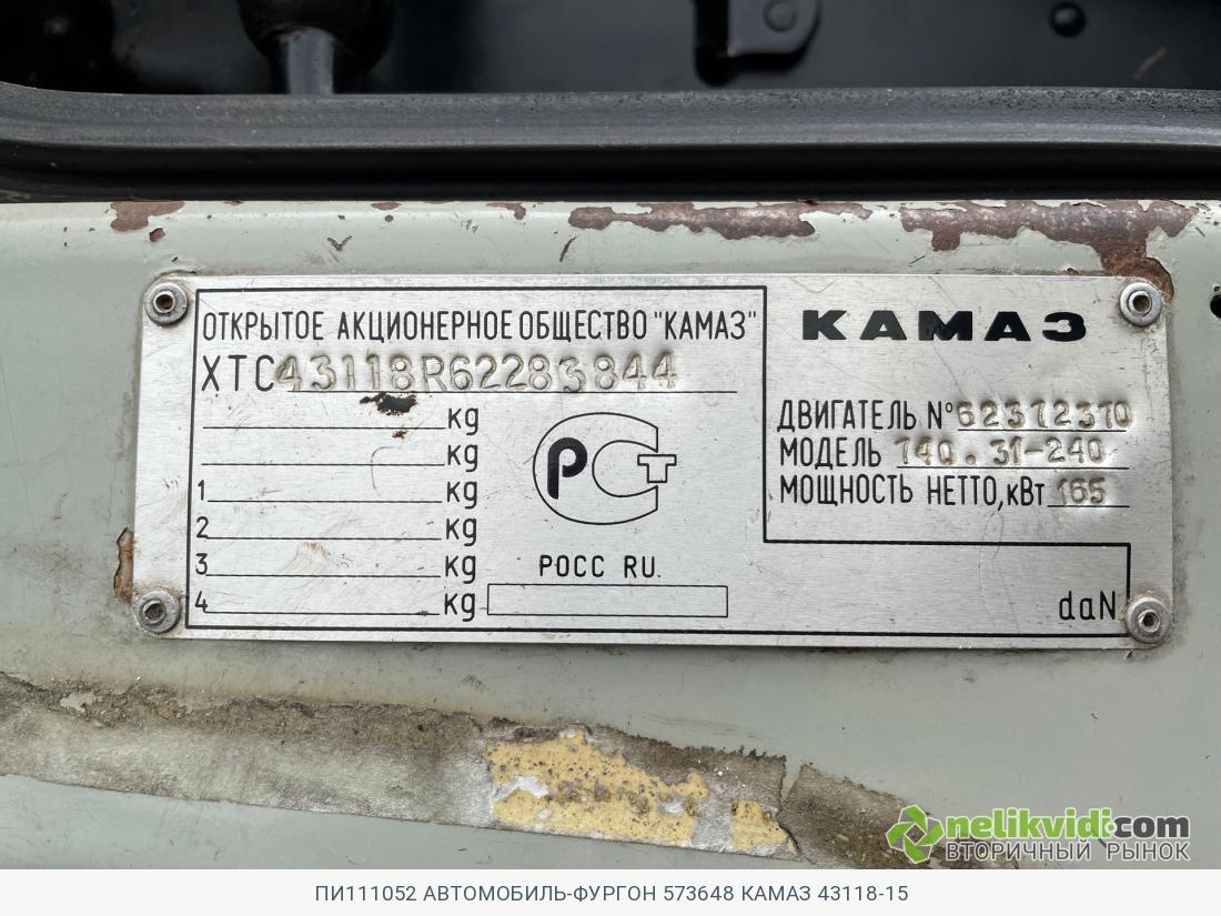 ПИ111052 АВТОМОБИЛЬ-ФУРГОН 573648 КАМАЗ 43118-15. Автомобиль-фургон 573648 КамАЗ 43118-15 ШТ 1,000 исправно 2006