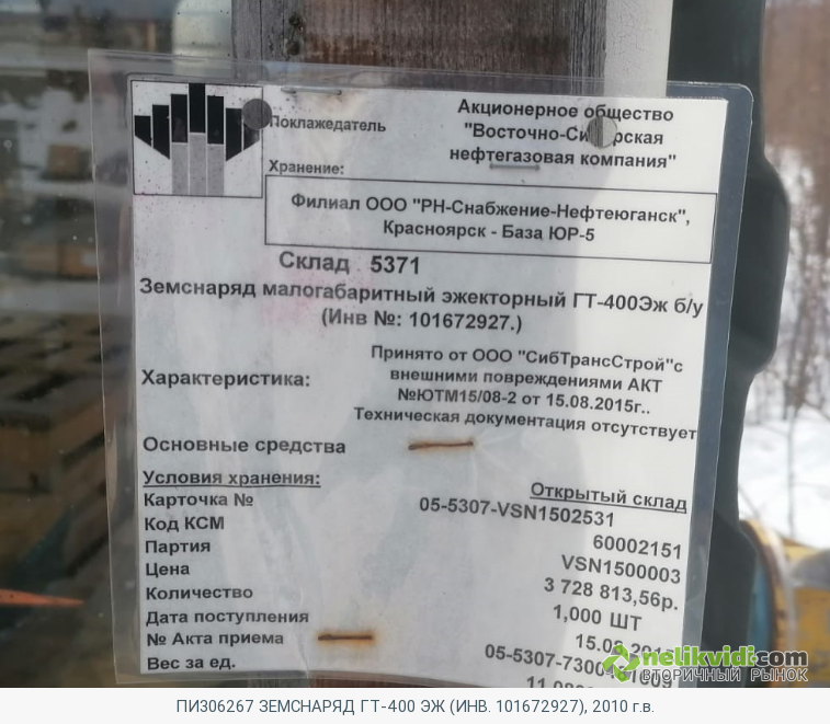 Местонахождение имущества: Красноярский край, Юрубчено-Тохомское м/р, Эвенкийский муниципальный район