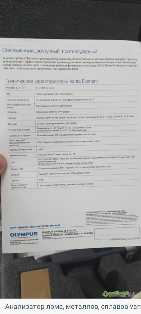 Анализатор лома, металлов, сплавов vanta Element. Рассмотрим Ваше ценовое предложение и доставку до Вашего города