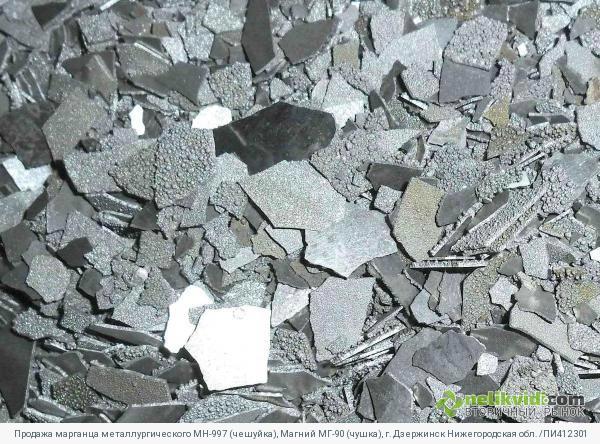 Продажа марганца металлургического МН-997 (чешуйка), Магний МГ-90 (чушка), г. Дзержинск Нижегородская обл. /ПИ412301. Лот 1