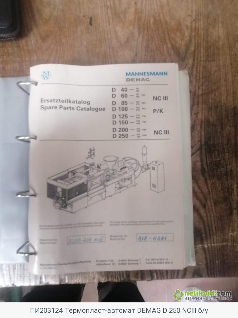 ПИ203124 Термопласт-автомат DEMAG D 250 NCIII б/у. АО "РНПК" реализует имущество: