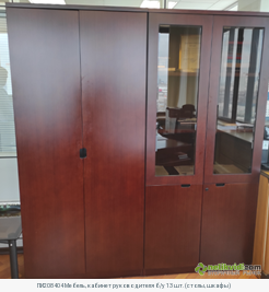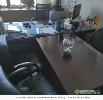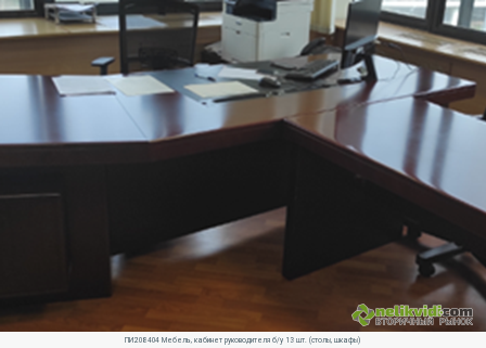 ПИ208404 Мебель, кабинет руководителя б/у 13 шт. (столы, шкафы). Брифинг-приставка, цв. махагон, Арт. FR-1 Количество: 2 шт. НМЦ: 12 137,00 руб./шт., без НДС