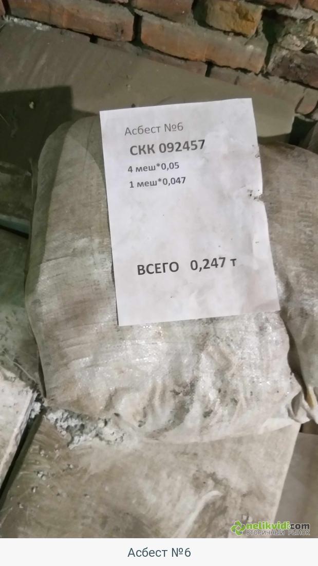 Асбест №6. Группа материала: ЛКМ,Сух.смеси и хим.материалы. Подгруппа материала: Асбест. Коэффициент тех. состояния: 0,4. Город: Никель. Склад: 2085