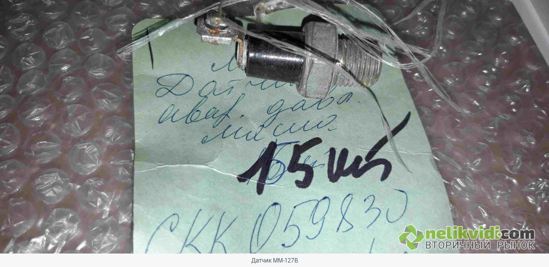 Датчик ММ-127В. Группа материала: Оборудование. Подгруппа материала: Электрооборудование, приборы автомобилей и тракторов. Технические характеристики: Аварийного давления воздуха. Коэффициент тех. состояния: 0,7. Склад: 0003. Обозначение склада: Нлк.ЦМТО_СКЛ_3. Город: Мончегорск