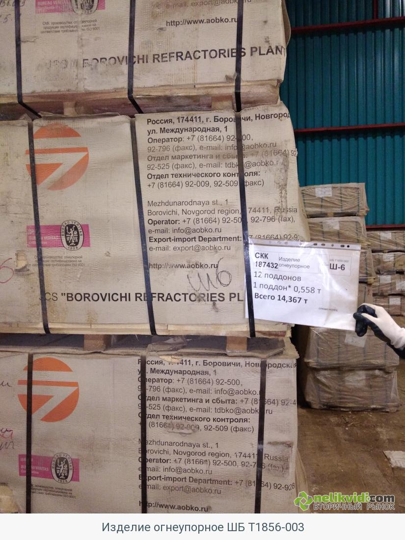 Изделие огнеупорное ШБ Т1856-003. Группа материала: Огнеупорная продукция. Подгруппа материала: Алюмосиликатные огнеупорные изделия. ГОСТ, ТУ, Каталожный номер: ГОСТ Р 53406-2009. Коэффициент тех. состояния: 0,9. Склад: 0010. Обозначение склада: Нлк.ЦМТО_СКЛ_10. Город: Мончегорск