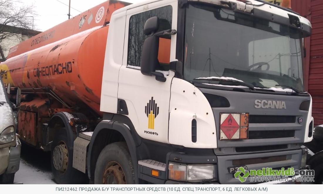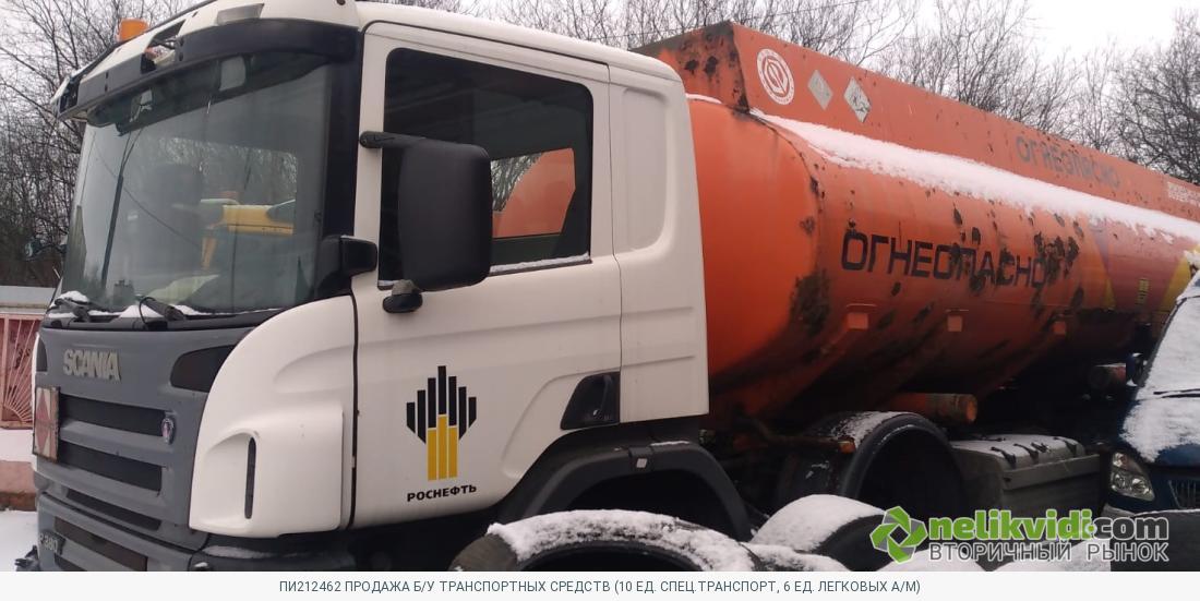 Лот 9 - Автоцистерна БЦМ-162 на шасси SCANIA H380CB8X4HNZ б/у 2007 г.в. Продается Автоцистерна БЦМ-162 на шасси SCANIA H380CB8X4HNZ б/у 2007 г.в. в технически неисправном состоянии. Частично отсутствует ЛКП, местами сквозное прогнивание. Неисправность двигателя, КПП, рессоры, ходовой части. Отсутствует часть электрооборудования. Полный износ протектора. 1 722 472,80 RUB