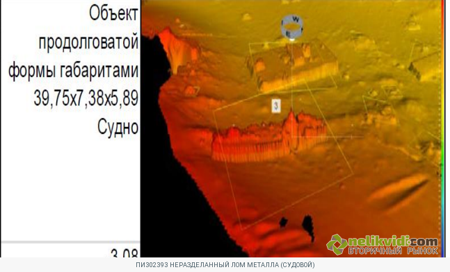 ПИ302393 НЕРАЗДЕЛАННЫЙ ЛОМ МЕТАЛЛА (СУДОВОЙ). лом неразделанный судовой представляет собой останки металлического судна с геометрическими размерами (ДхТПхВ) 39,75x7.38x5,89 м.