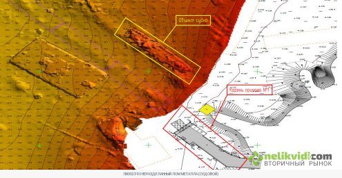 Расположение объекта: акватория губы Рослякова, у Плавпричала № 1 с северной стороны в координатах 69° 03,3' С.Ш. 33° 12,2' В.Д. на отметке минус 9,08 м в Балтийской системе (в средней части).