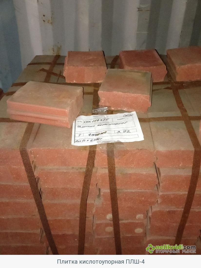 Плитка кислотоупорная ПЛШ-4. Группа материала: Прочие МТР. Подгруппа материала: Плитка кислотоупорная. ГОСТ, ТУ, Каталожный номер: ТУ 21-РСФСР-456-87. Коэффициент тех. состояния: 0,7. Склад: 0010. Обозначение склада: Нлк.ЦМТО_СКЛ_10. Город: Мончегорск