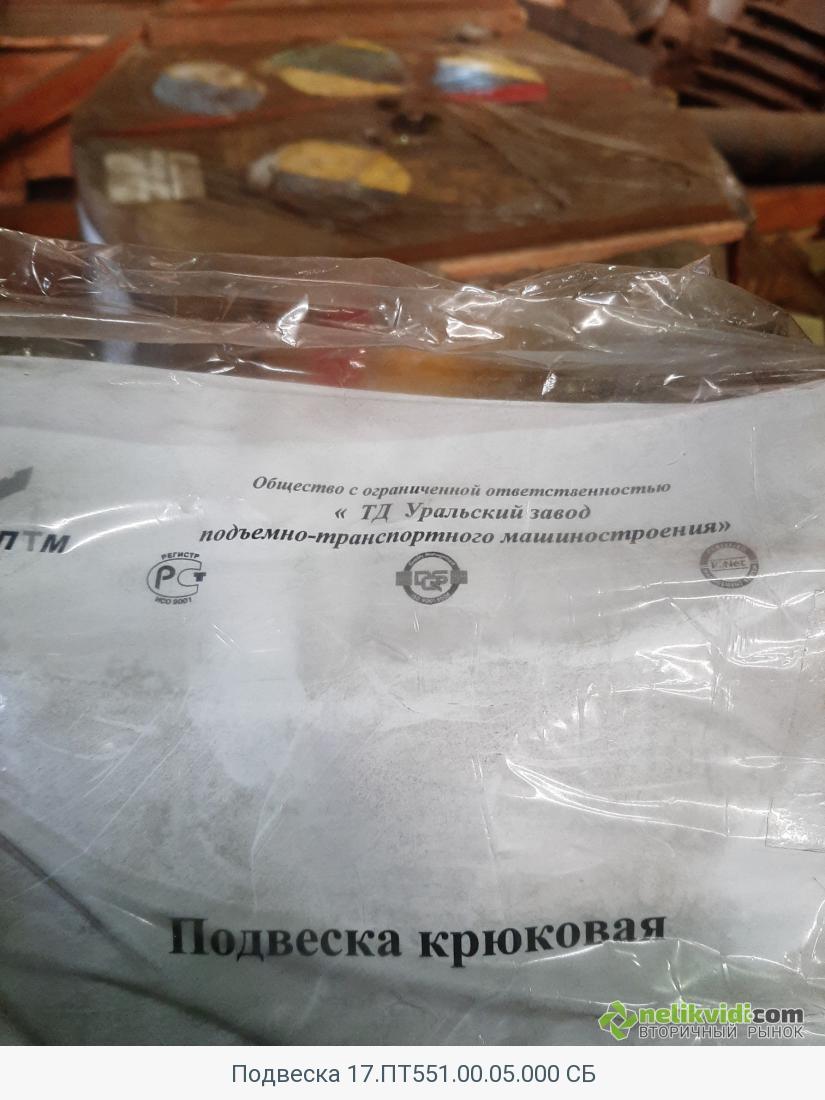 Подвеска 17.ПТ551.00.05.000 СБ. Группа материала: Прочие МТР. Подгруппа материала: ЗИП к кранам. Наименование оборудования: Кран мостовой г/п 60/12/12. Технические характеристики: Крановая г/п12т, h=1207мм, крюк 18Б-1. Коэффициент тех. состояния: 1,0. Город: Мончегорск. Склад: 0003