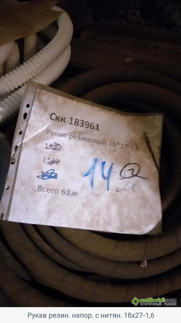 Рукав резин. напор. с нитян. 18х27-1,6. Группа материала: Прочие МТР. Подгруппа материала: Рукав резиновый напорный с нитяным усилением неармированный. Оборудование: Рукава резиновые напорные с нитяным усилением неармированные. Коэффициент тех. состояния: 1. Склад: 0010. Обозначение склада: ЦМТО_СКЛ_10. Город: Мончегорск