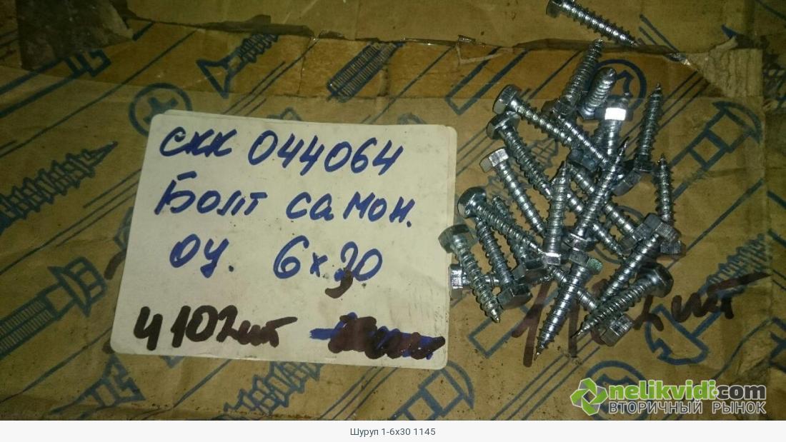 Шуруп 1-6х30 1145. Группа материала: Метизы. Подгруппа материала: Шурупы. Технические характеристики: С потайной головкой, прямым шлицем, D=6мм, L=30мм, оцинкованный. ГОСТ, ТУ, Каталожный номер: ГОСТ 1145-80. Коэффициент тех. состояния: 0,9. Склад: 0004. Обозначение склада: Нлк.ЦМТО_СКЛ_4. Город: Мончегорск