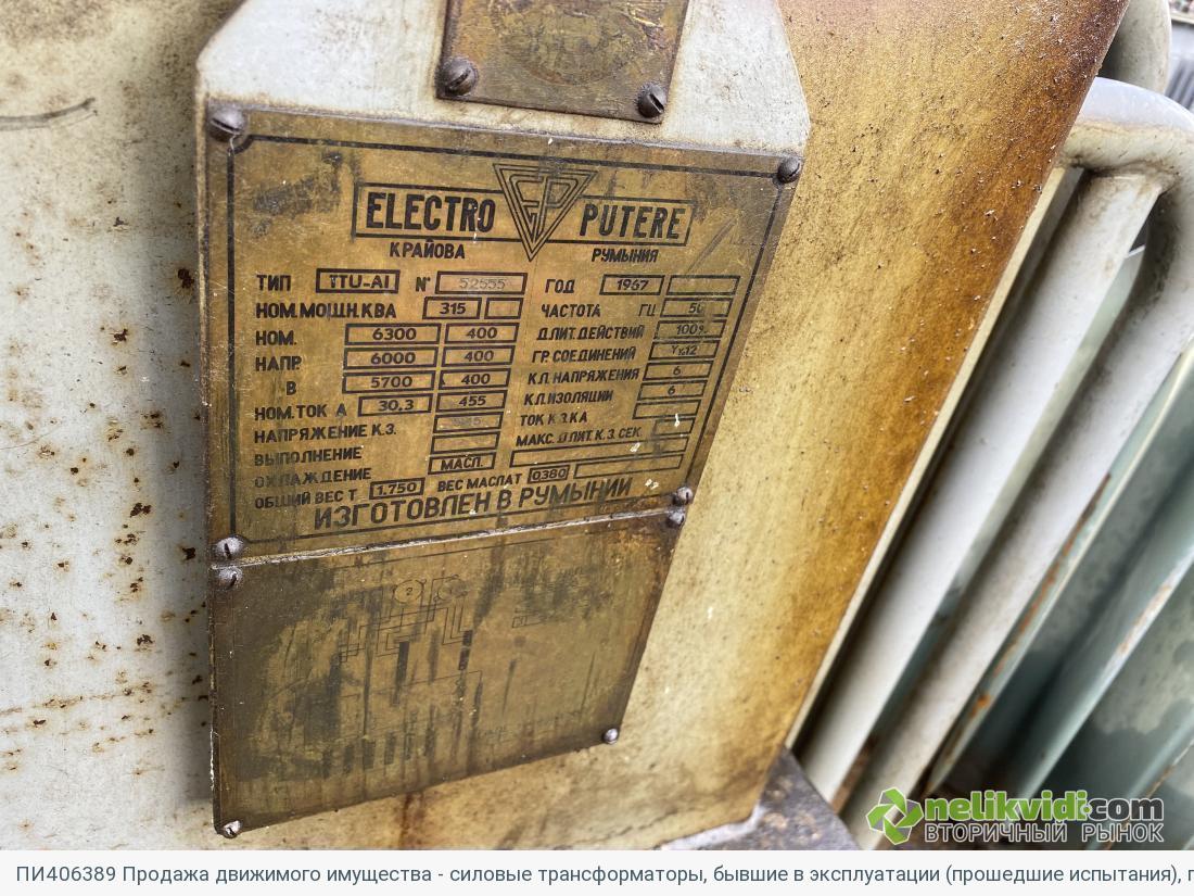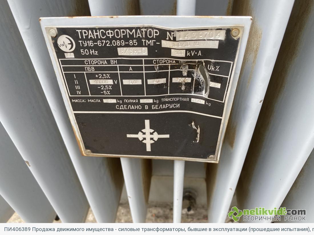 ПИ406389 Продажа движимого имущества - силовые трансформаторы, бывшие в эксплуатации (прошедшие испытания), принадлежащие на пр. Трансформаторы