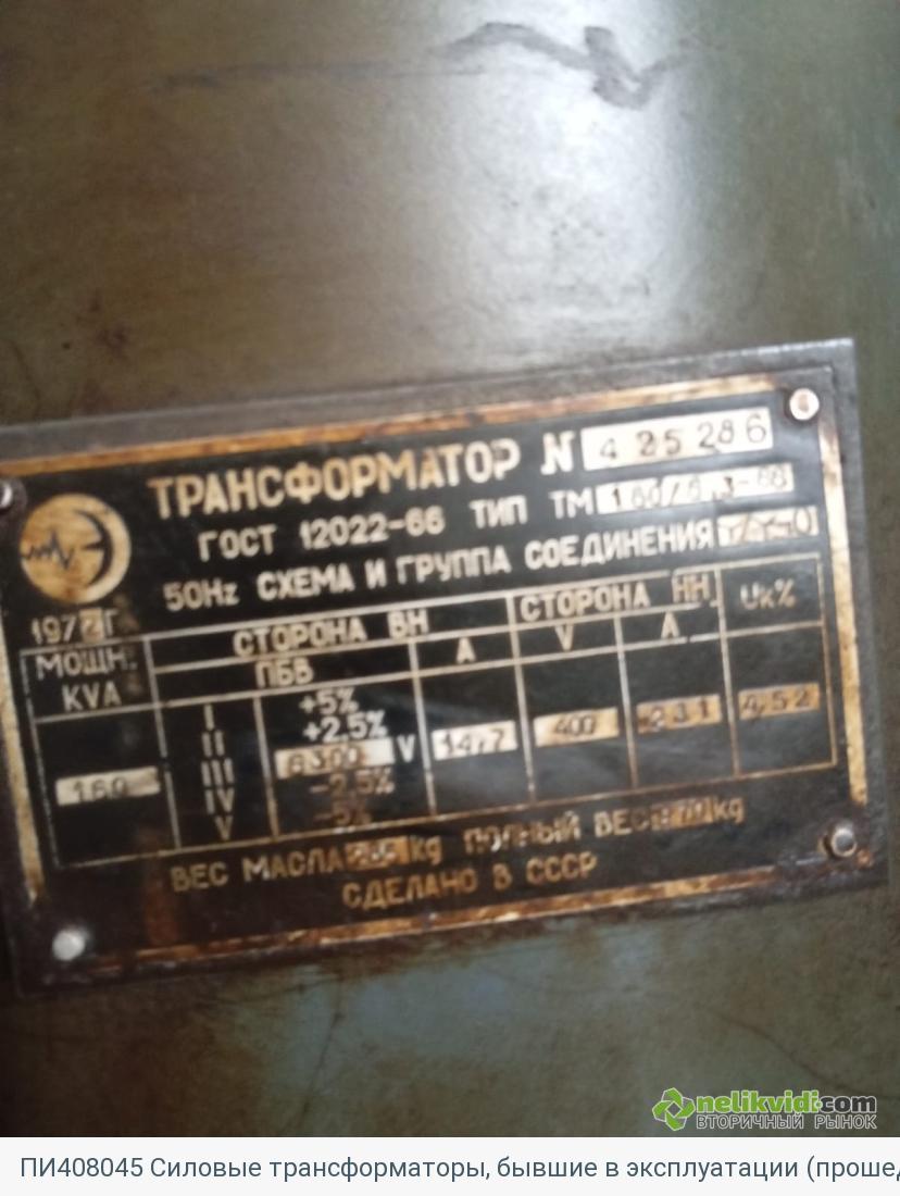 ПИ408045 Силовые трансформаторы, бывшие в эксплуатации (прошедшие испытания). Информация об имуществе