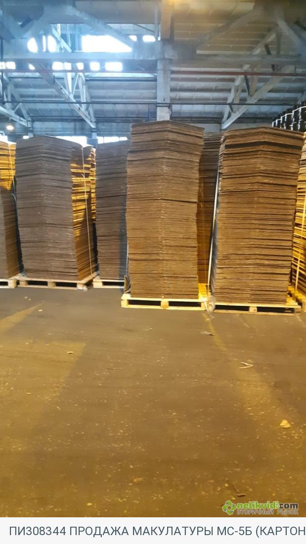 ПИ308344 ПРОДАЖА МАКУЛАТУРЫ МС-5Б (КАРТОН Б/У), 47 ТОНН. Макулатура МС-5Б 47тонн
