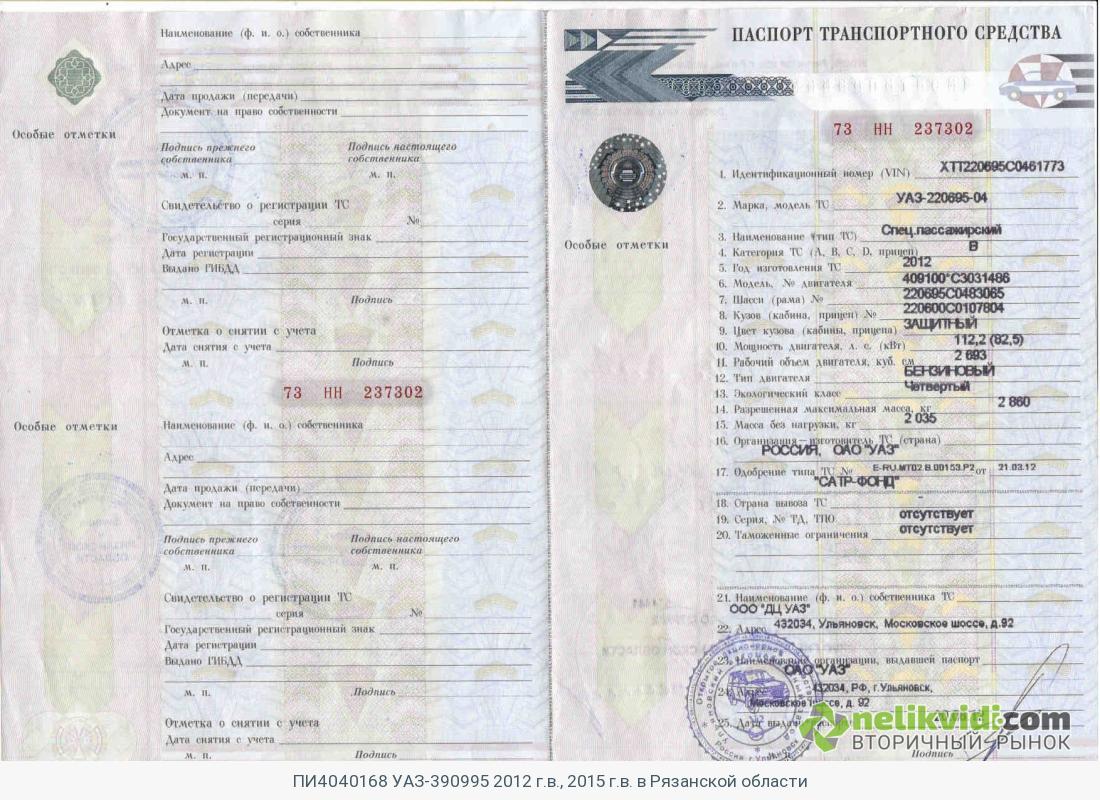 ПИ404168 УАЗ-390995 2012 г.в., 2015 г.в. в Рязанской области. УАЗ-390995 Х 779 СН 62 1 ЕД - - 2015