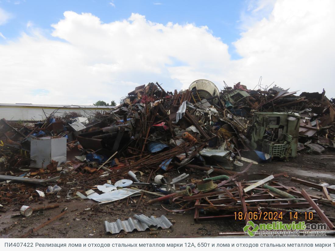 ПИ407422 Реализация лома и отходов стальных металлов марки 12А, 650т и лома и отходов стальных металлов марки 12А (пучки теплоо. Лот1 Лом и отходы стальных металлов марки 12А, 650т