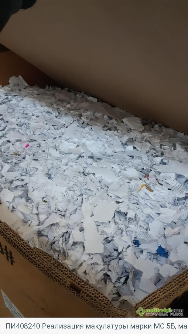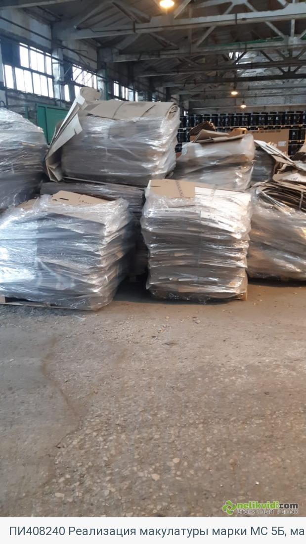 ПИ408240 Реализация макулатуры марки МС 5Б, марки МС 7Б. Продаем макулатуру :