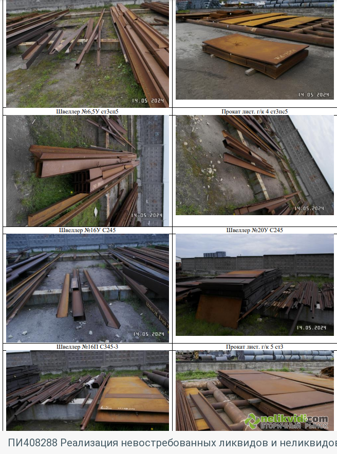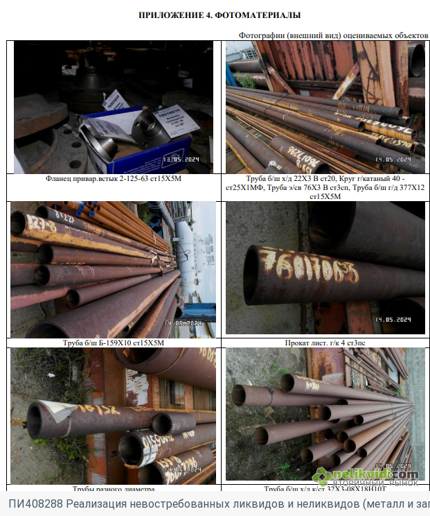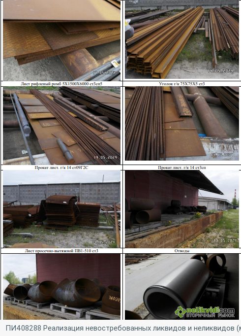 ПИ408288 Реализация невостребованных ликвидов и неликвидов (металл и запорная арматура). Перечень имущества:
