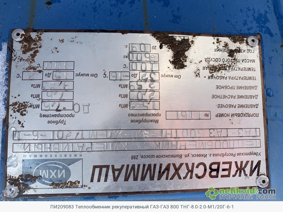 ПИ209083 Теплообменник рекуперативный ГАЗ-ГАЗ 800 ТНГ-8.0-2.0-М1/20Г-6-1. Теплообменник рекуперативный ГАЗ-ГАЗ 800 ТНГ-8.0-2.0-М1/20Г-6-1 Количество: 1 шт.