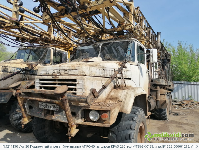 ПИ211130 Лот 20 Подъемный агрегат (А-машина) АПРС-40 на шасси КРАЗ 260, гос.№Т868ХК163, инв.№1325_00001295, Vin:X1C000260V078599. Подъемный агрегат (А-машина) АПРС-40 на шасси КРАЗ 260