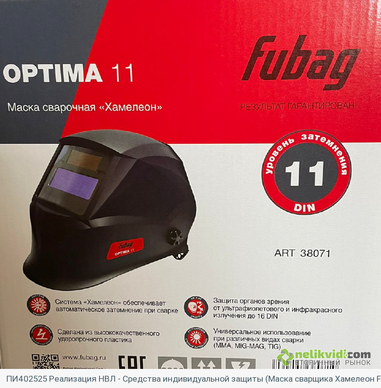ПИ402525 Реализация НВЛ - Средства индивидуальной защиты (Маска сварщика Хамелеон Fubag OPTIMA 11). № п/п КСМ Дата первичного прихода Количество Единица измерения Наименование Место нахождения