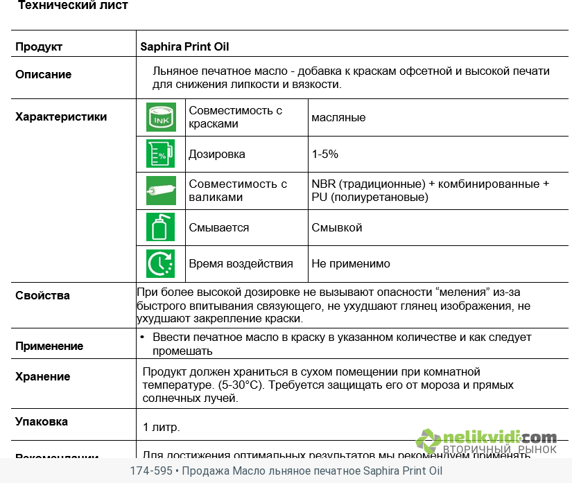 174-595 • Продажа Масло льняное печатное Saphira Print Oil. Продажа Масло льняное печатное Saphira Print Oil.