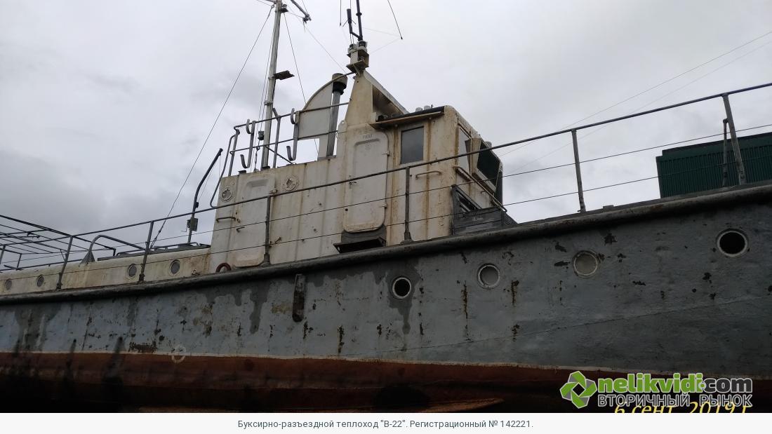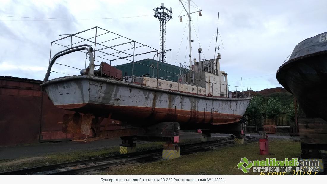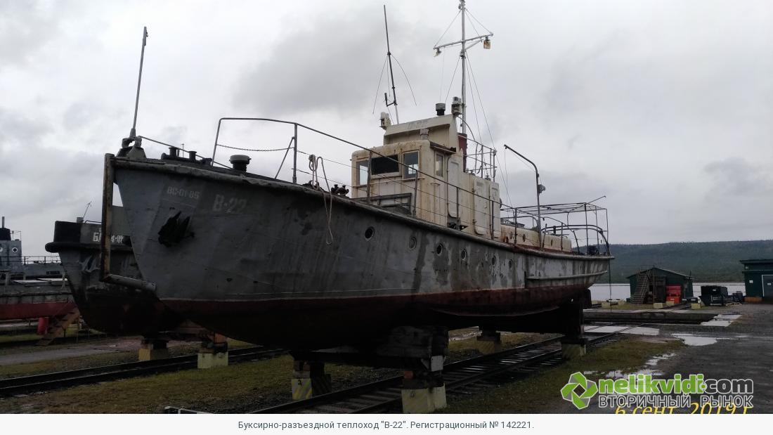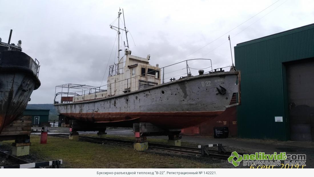 Буксирно-разъездной теплоход "В-22". Регистрационный № 142221.. Местонахождение: г. Братск, Иркутская обл. Год выпуска 1966.