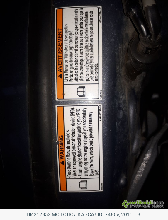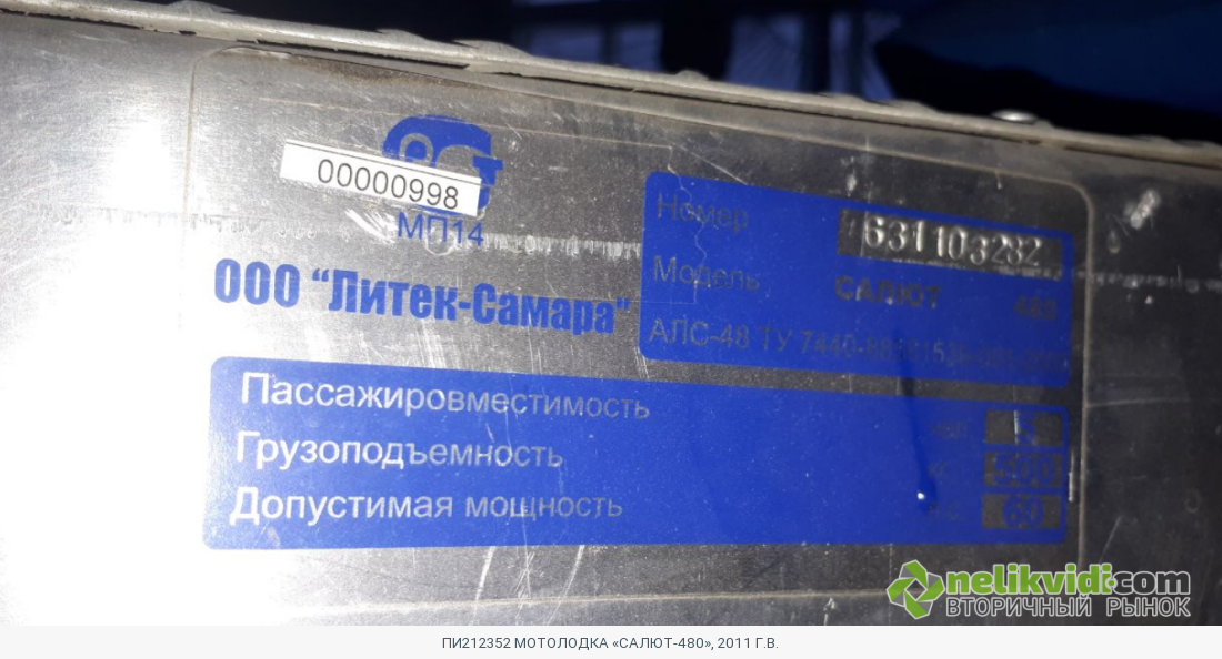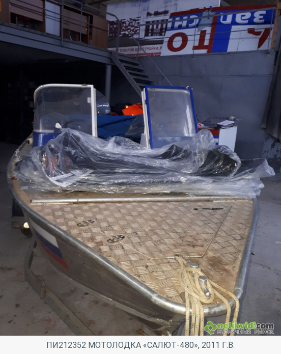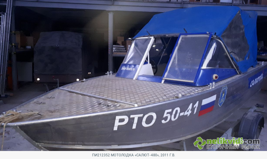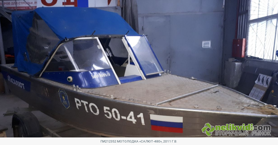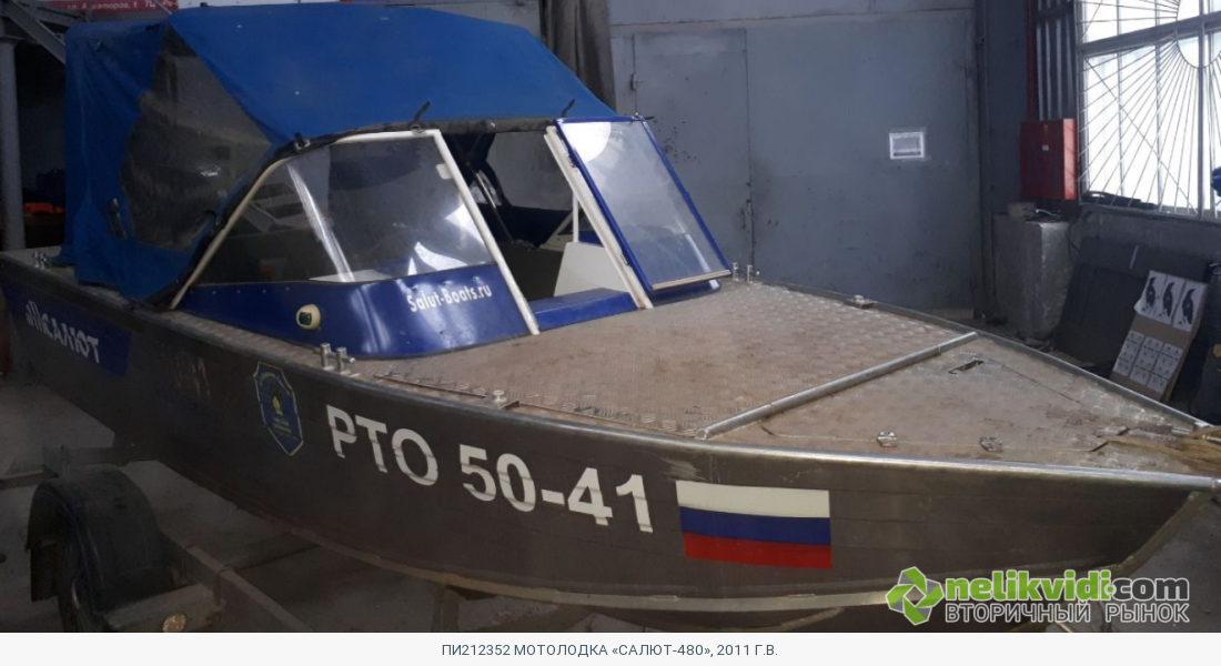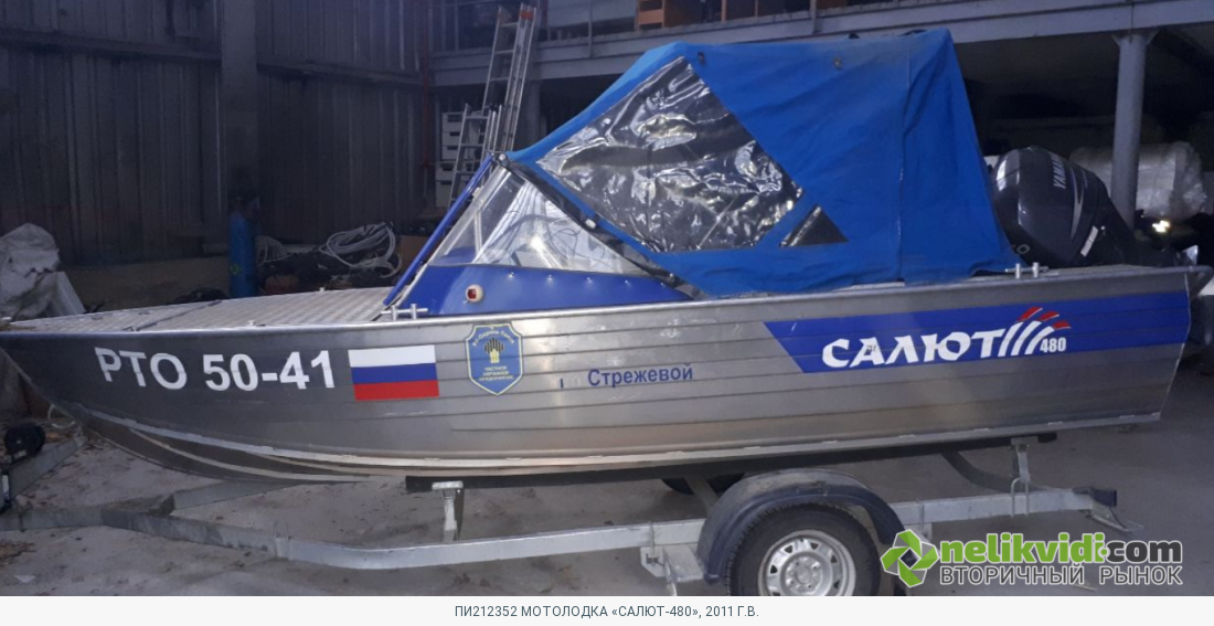 ПИ212352 МОТОЛОДКА «САЛЮТ-480», 2011 Г.В.. Мотолодка «Салют-480», бортовой номер РТО 50-41, Подвесной мотор AMAHA F60 CETL, Прицеп М3СА 81771Е Количество – 1 шт. собственник ООО ЧОП «РН-Охрана-Томск» Инвентарный номер 00000998