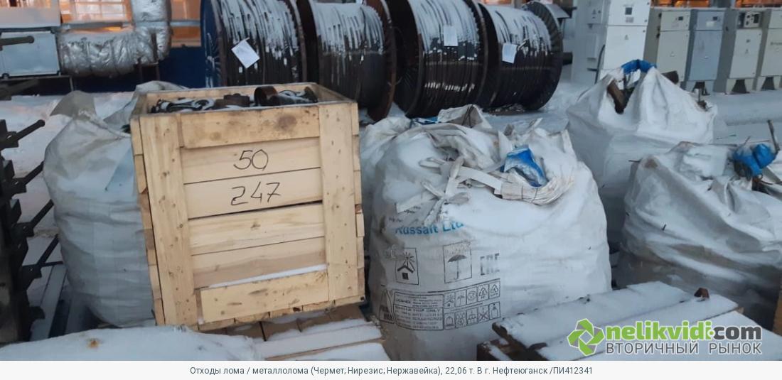 Отходы лома / металлолома (Чермет; Нирезис; Нержавейка), 22,06 т. В г. Нефтеюганск /ПИ412341. Продажа металлолома в виде делимого лота в котором представлены :