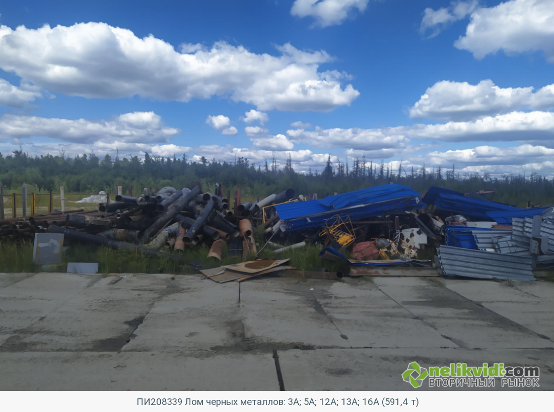 ПИ208339 Лом черных металлов: 3А; 5А; 12А; 13А; 16А (591,4 т). Лом и отходы стальные 3А Количество: 0,305 т