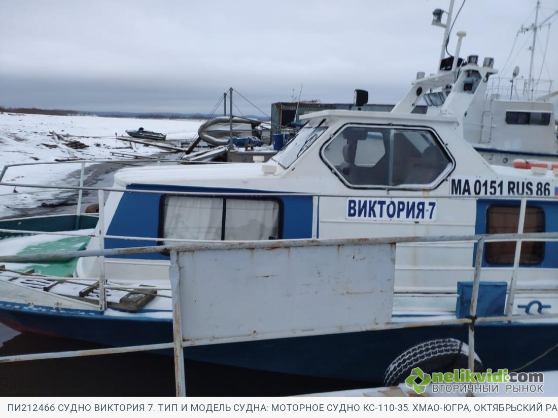 ПИ212466 СУДНО ВИКТОРИЯ 7. ТИП И МОДЕЛЬ СУДНА: МОТОРНОЕ СУДНО КС-110-35. ХМАО-ЮГРА, ОКТЯБРЬСКИЙ РАЙОН, П. ПРИОБЬЕ.. Судно Виктория 7, идентификационный номер: МА0151RUS86, год и место постройки: 2006 г., город Кострома. Тип и модель судна: моторное судно КС-110-35. Категория сложности района плавания: KcIVpIII. Строительный идентификационный номер: 234796. Материал корпуса: сталь. Максимальная допустимая мощность двигателя: 184 кВт. Количество водонепроницаемых отсеков: 2. Длина корпуса судна наибольшая: 17,1 м. Ширина корпуса судна наибольшая: 3,22 м. Максимальная осадка: 0,5 м. Водоизмещение: 11,5 т. Максимальное количество людей на борту: 12. Масса укомплектованного судна: 11500 кг. Максимальная высота волны: 0,75 м. Минимальный надводный борт: 0,95 м. Двигатель, тип, модель: СТАЦ: ЯМЗ238 НД4 ДИЗ, № 50262506, мощность 184 кВт.