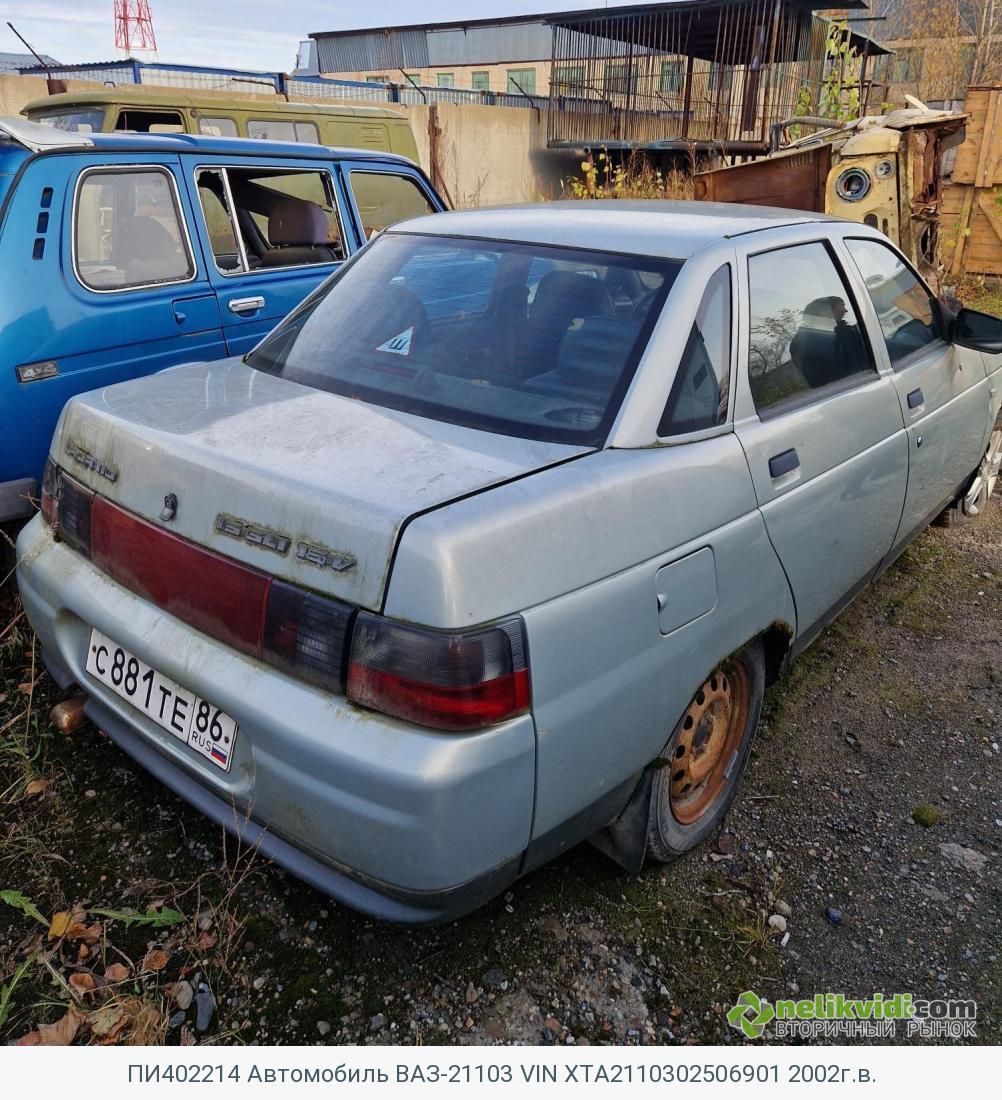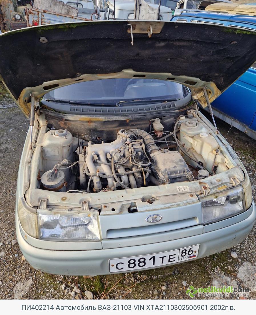 ПИ402214 Автомобиль ВАЗ-21103 VIN XTA2110302506901 2002г.в.. Марка/модель ВАЗ-21103