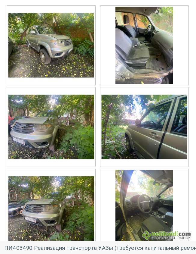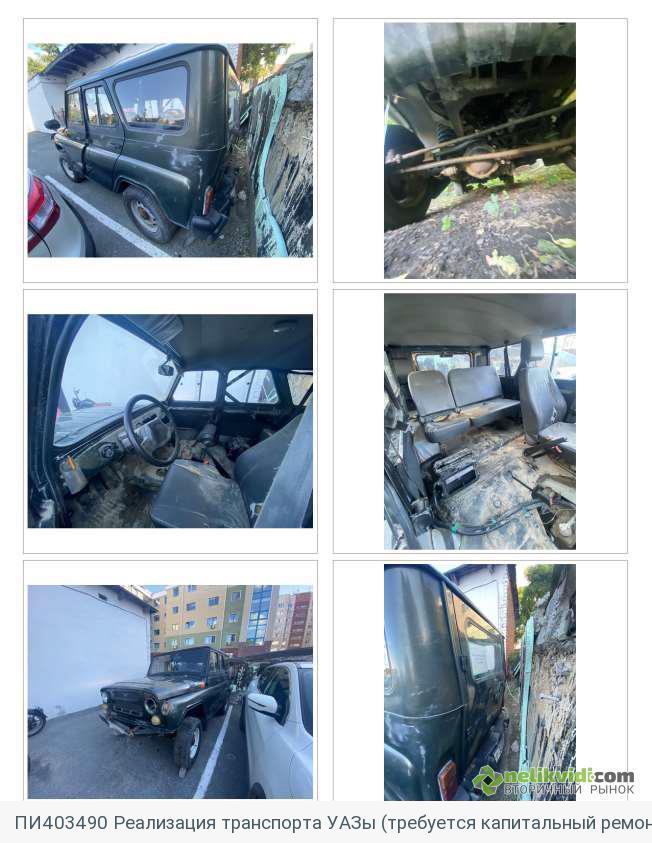ПИ403490 Реализация транспорта УАЗы (требуется капитальный ремонт). ООО "Соровскнефть" реализует следующие автомобили через ЭТП ТЭК-Торг: