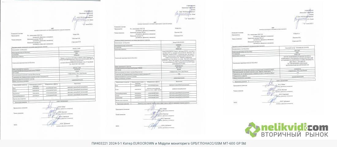 ПИ405057 Катер EUROCROWN и Модули мониторига GPS/ГЛОНАСС/GSM МТ-600 GP Std. Описание имущества