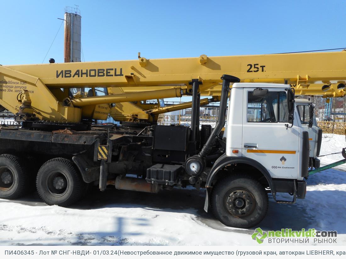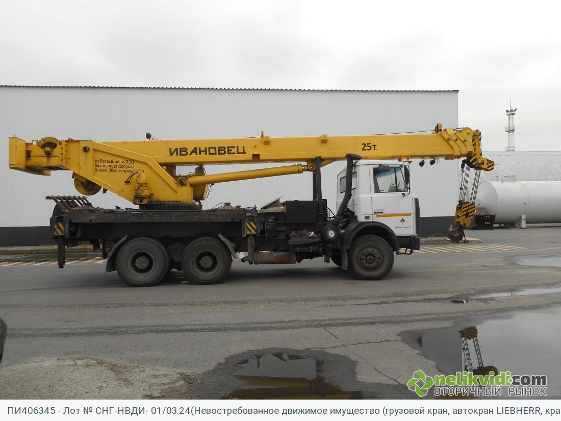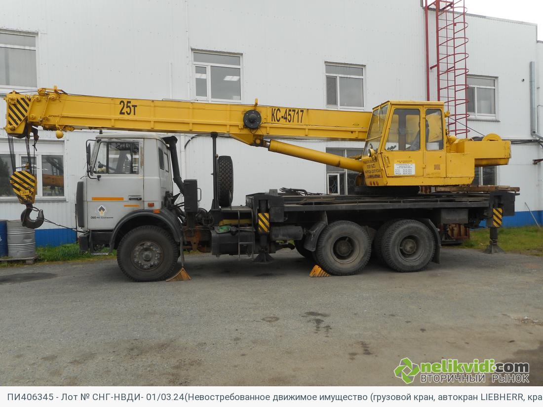 ПИ406345 - Лот № СНГ-НВДИ- 01/03.24(Невостребованное движимое имущество (грузовой кран, автокран LIEBHERR, кран автомобильный). ПИ406345 - Лот № СНГ-НВДИ- 01/03.24(Невостребованное движимое имущество (грузовой кран, автокран LIEBHERR, кран автомобильный)