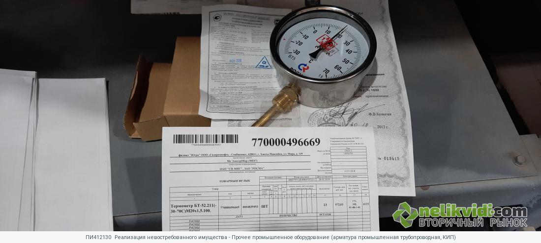 ПИ412130 Реализация невостребованного имущества - Прочее промышленное оборудование (арматура промышленная трубопроводная, КИП). Описание имущества/ лот делимый: