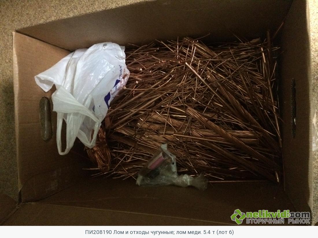 ПИ208190 Лом и отходы чугунные; лом меди. 5.4 т (лот 6). Лом меди, количество: 0,02 т