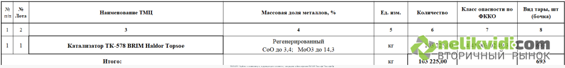 ПИ404490 Отработанные катализаторы, содержащие цветные металлы, находящиеся на балансе филиала ПАО АНК "Башнефть" "Башнефть-Уфа. Наименование ТМЦ Массовая доля металлов, % Ед. изм. Количество Класс опасности по ФККО
