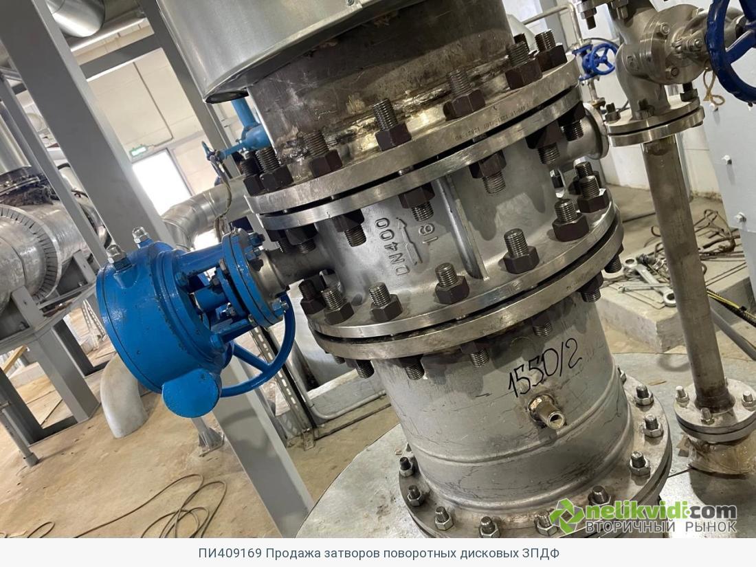 Затворы поворотные дисковые ЗПДФ 400.016.02.02.3.Р Pn-1,6 МПа (16 кгс/см2), 2021 года выпуска, смонтированы в 2023 году, состояние - б/у, описание - в паспортах, 2 штуки.
