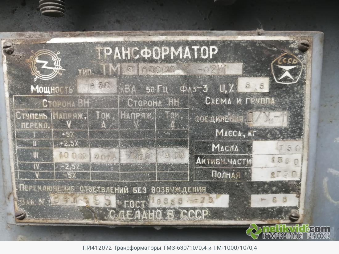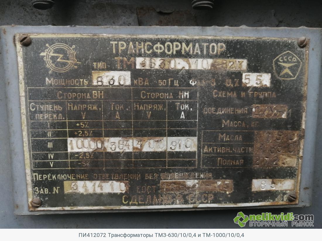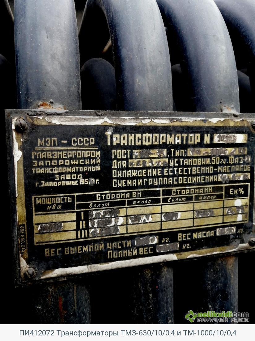 ПИ412072 Трансформаторы ТМЗ-630/10/0,4 и ТМ-1000/10/0,4. Продаются Трансформаторы