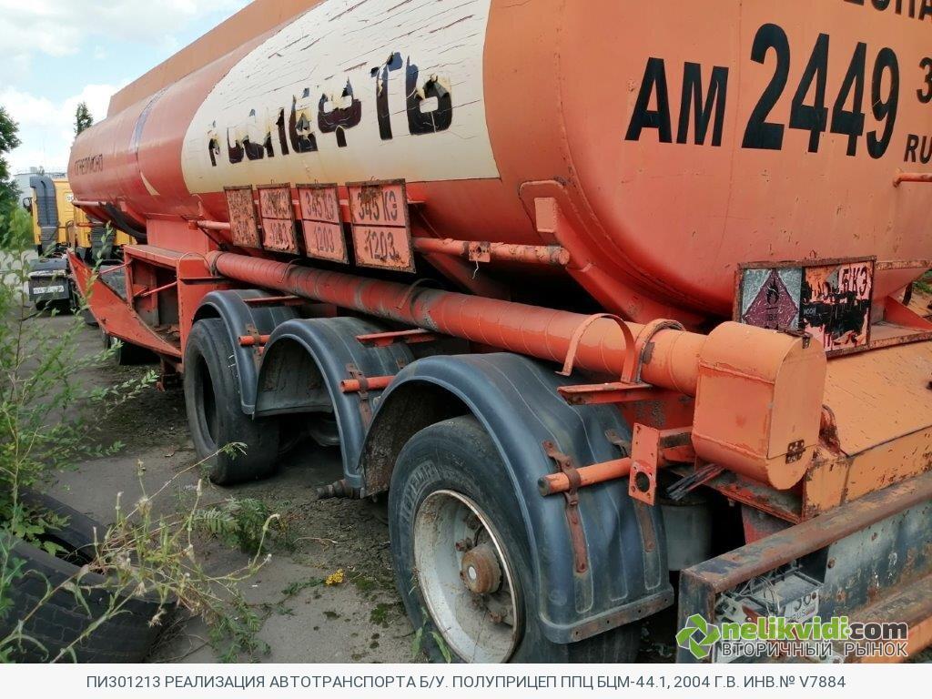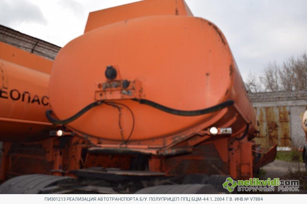 ПИ301213 РЕАЛИЗАЦИЯ АВТОТРАНСПОРТА Б/У. ПОЛУПРИЦЕП ППЦ БЦМ-44.1, 2004 Г.В. ИНВ.№ V7884. Полуприцеп ППЦ БЦМ-44.1, 2004 г.в. Инв.№ V7884 / Полуприцеп-цистерна технически неисправна. Ёмкость цистерны имеет внешнюю коррозию, требует полной покраски. Электропроводка замкнута, нарушен изолирующий слой. Внутренние перегородки отсеков имеют трещины, отсеки не герметичны. Заливные люки горловин не исправны, запорные устройства отсутствуют. Шины имеют предельный износ протектора. Оси требуют ремонта, с заменой сайлентблоков, тормозных дисков, подшипников, АБС не работает